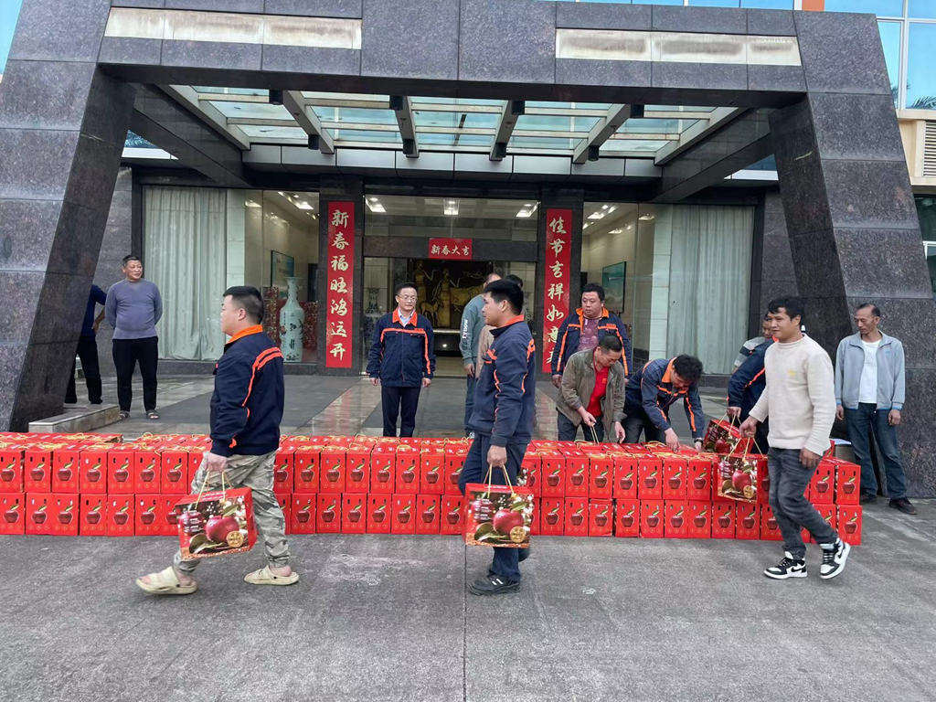 2025年11月22日下午,广西锡山矿业有限公司大新分公司基地办公楼、河池分公司行政办公楼暖意融融、笑意盈盈。为感谢全体员工一年来的辛勤付出与忠诚奉献,广西锡山投资控股有限公司特意为矿业公司各部室、大新分公司、河池分公司、弄松项目部等科室、工区员工筹备了700多份“爱心水果”,以实际行动传递企业人文关怀,凝聚团队力量,为年末安全生产经营目标冲刺注入温暖动力。