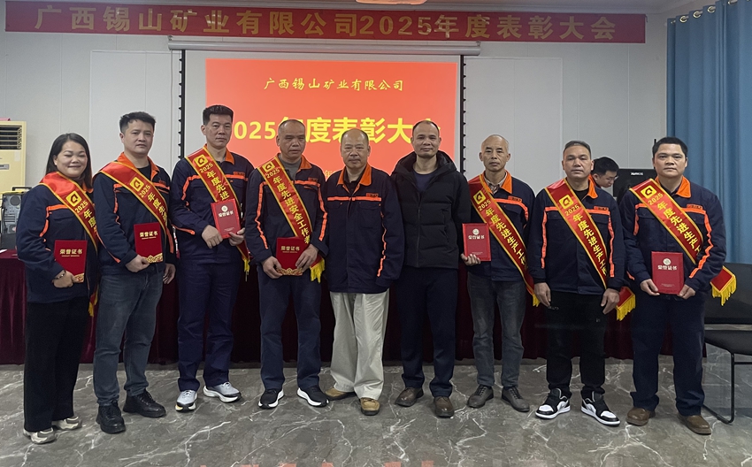 为表彰先进、致敬奋斗,明确目标、压实责任,2026年2月10日,广西锡山矿业有限公司在大新县下雷镇顺利召开2025年度表彰大会。广西锡山投资控股有限公司领导、广西锡山矿业有限公司领导班子、各分公司及项目部负责人、先进集体代表、先进个人等齐聚一堂,共同回顾过往成绩,表彰优秀典范,部署2026年重点工作,凝聚高质量发展的磅礴力量。